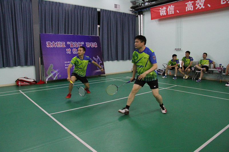 2015年6月18日晚上,在興科健身俱樂部舉行了一場(chǎng)澳大利亞“富寶杯”羽毛球?qū)官?,這次對(duì)抗賽成員由寶業(yè)集團(tuán)俱樂部、興科集團(tuán)俱樂部和輕羽飛揚(yáng)俱樂部組成,比賽項(xiàng)目有男子雙打和男女混雙。