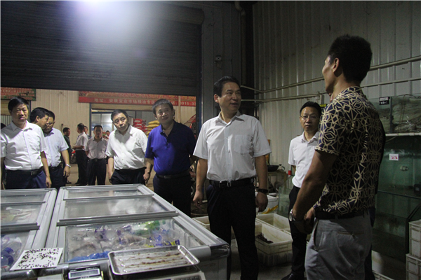 趙市長一行人先后參觀了農(nóng)貿(mào)市場蔬菜區(qū)、糧油區(qū)和生鮮區(qū),農(nóng)貿(mào)市場負責人就目前市場整體概況、發(fā)展情況、營運管理狀況向考察領(lǐng)導做了全面介紹,并對趙市長提出的問題進行了詳細的解答。針對市場的管理工作,趙市長囑咐農(nóng)貿(mào)市場負責人,要進一步提升專業(yè)化管理水平,更加重視食品與市場的安全管理工作。