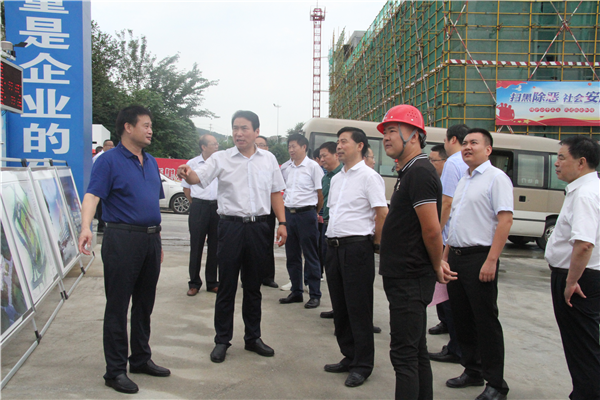 2019年8月14日上午八點半,在全國人大代表、陜西省安康市委副書記、市長趙俊民的帶領(lǐng)下,市區(qū)十多位相關(guān)部門領(lǐng)導來到寶業(yè)集團公司農(nóng)貿(mào)市場和倉儲物流園在建項目進行參觀指導工作,集團公司董事長張龍寶帶領(lǐng)倉儲物流園項目負責人汪軍總經(jīng)理、農(nóng)貿(mào)市場負責人馬龍總經(jīng)理及相關(guān)工作人員熱情接待。