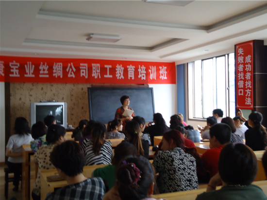 十二五規(guī)劃以來(lái),國(guó)內(nèi)經(jīng)濟(jì)形勢(shì)對(duì)于企業(yè)的發(fā)展提出了新的要求、新的挑戰(zhàn)。為了適應(yīng)著一系列的要求挑戰(zhàn),我司寶業(yè)絲綢分公司開展了一系列的宣傳培訓(xùn)活動(dòng)。力爭(zhēng)保質(zhì)保量促發(fā)展、一心一意搞生產(chǎn)。為公司的每一步發(fā)展都打下堅(jiān)實(shí)的基礎(chǔ)。